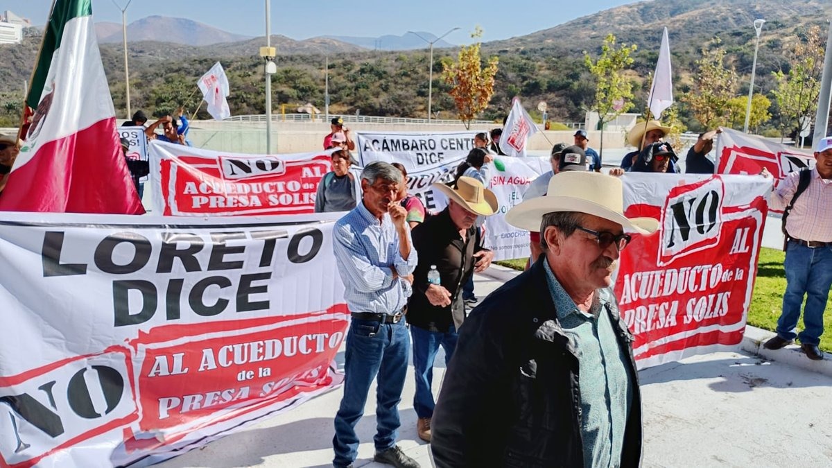 “¡No al acueducto de la presa Solís!”, se leía, entre otras frases, en las lonas que portaron los inconformes. Mientras, en el recinto legislativo sus integrantes discutían la aprobación del presupuesto para dicha obra.